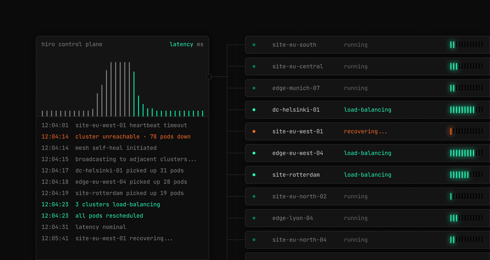 Our Braine software built from open source modules, has high levels of automation and AI built-in for declarative deployment and management of edge services and applications, increased flexibility for assigning functions and application components to EMDC hardware, improved operational efficiencies resulting from common automation and operating procedures and reduced power usage by placing workloads intelligently and powering down unused hardware.